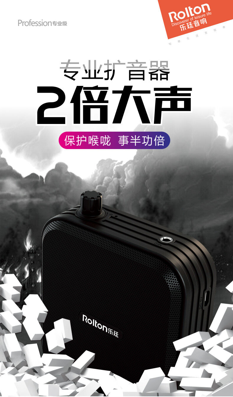Rolton K600 Microphone Bluetooth Loudspeaker Portable Auto Pairing Voice Amplifier Megaphone Speaker USB Charging for Teaching Sales