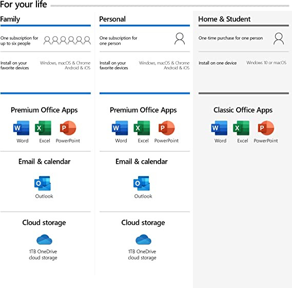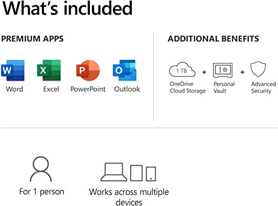 Premium Office apps, including Word, Excel, PowerPoint, and Outlook