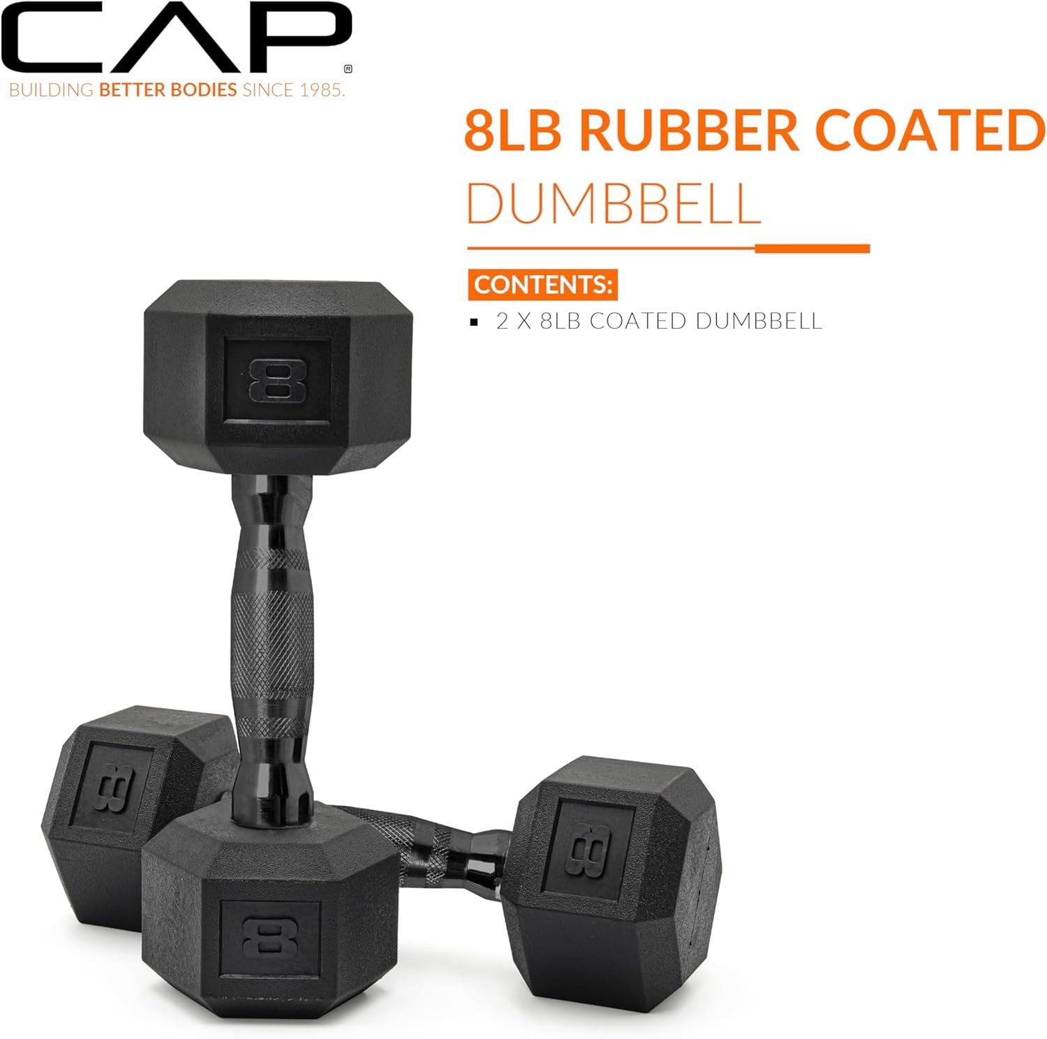 Selection: This Cap dumbbell set is available in 3, 5, 8, 10, 12, 15, and 50 lb. weights, in 5 lb. increments. Includes a 30-day manufacturer's warranty.