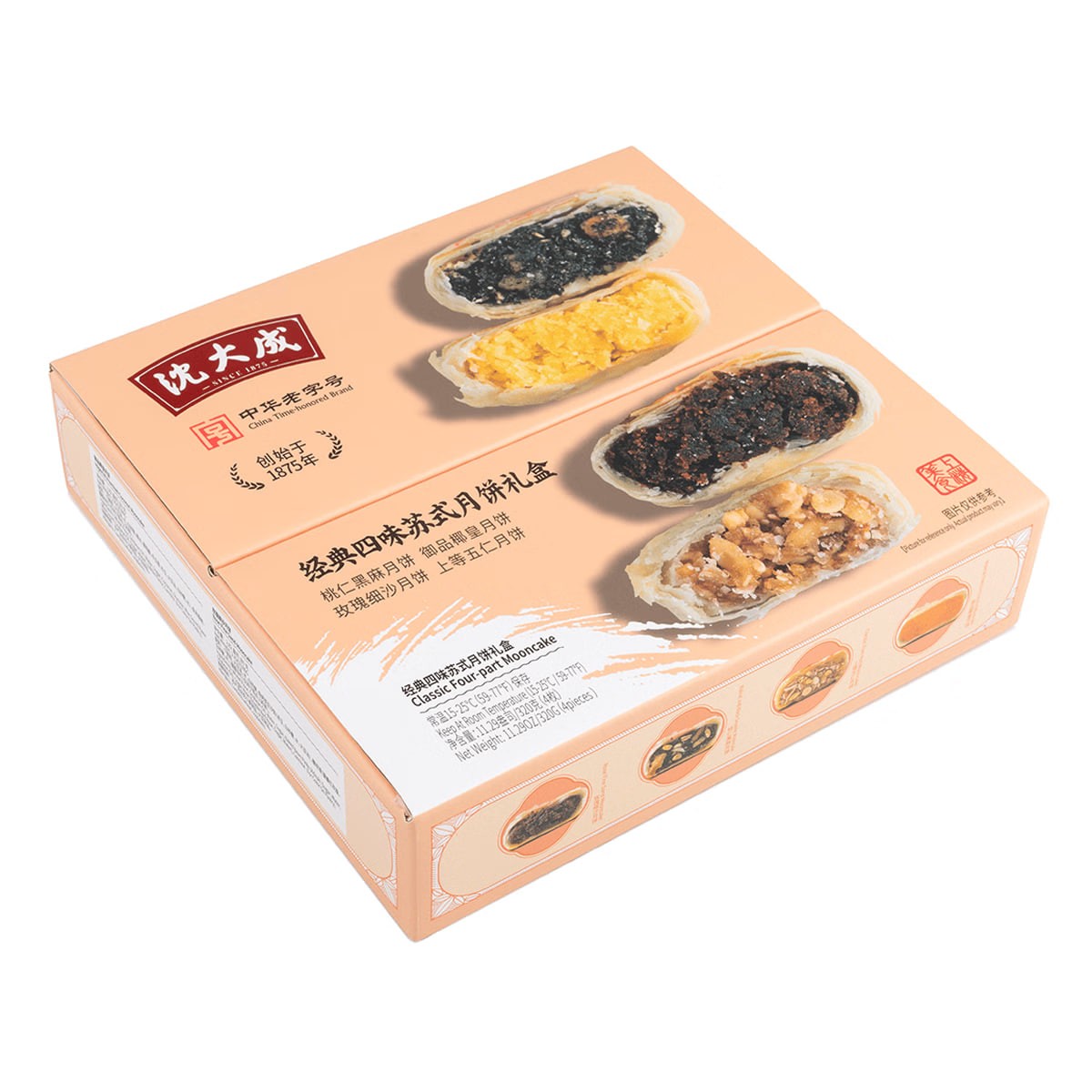 Mid-Autumn Festival Mooncakes Classic Four Flavors Suzhou Style Mooncake Gift Box 4 Pieces 320g