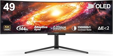 • 【49 Inch Curved Monitor with QD-OLED Technology】Premium OLED Panel delivers 5k2k 5120*1440 resolution up to 144hz monitor for content creation and gaming, 32:9 aspect ratio bring more wider visual than ordinary 16:9 monitor, capture game details more clearly for quick response. Tilt / Swivel / Height Adjustable meet different viewing visions