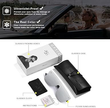 • Gift Creative Packaging - Classic Sunglasses*1, Fashion Sunglasses Bag*1, Glasses Cleaning Cloth*1, Box*1. A great sunglass gift for men and women, it will be a great gift for your family!