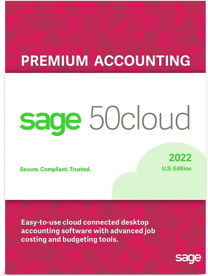 Sage Software 50 Premium U.S. 1-User One Year Subscription Cloud Connected Small Business Accounting Software 2022